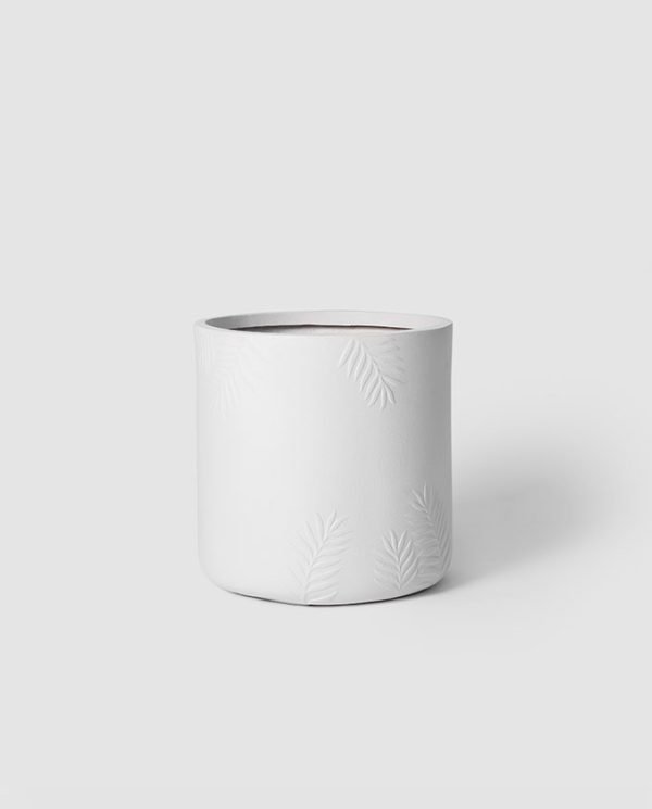 The mukul planter featuring an exquisite embossed leaf design. The intricate leaf pattern adds a touch of natural beauty and elegance to any decor.