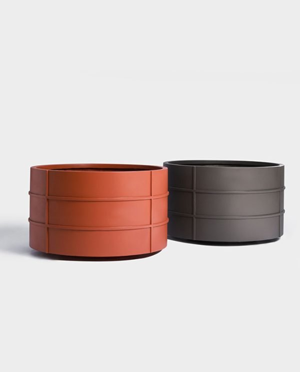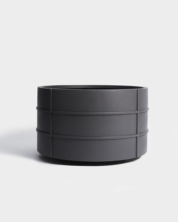 Featuring a sophisticated round, low bowl-like shape and elegant linear detailing. This planter combines its aesthetic appeal with its minimalist detailing perfect for any modern setting, making it an ideal choice for decks, gardens and poolside areas.